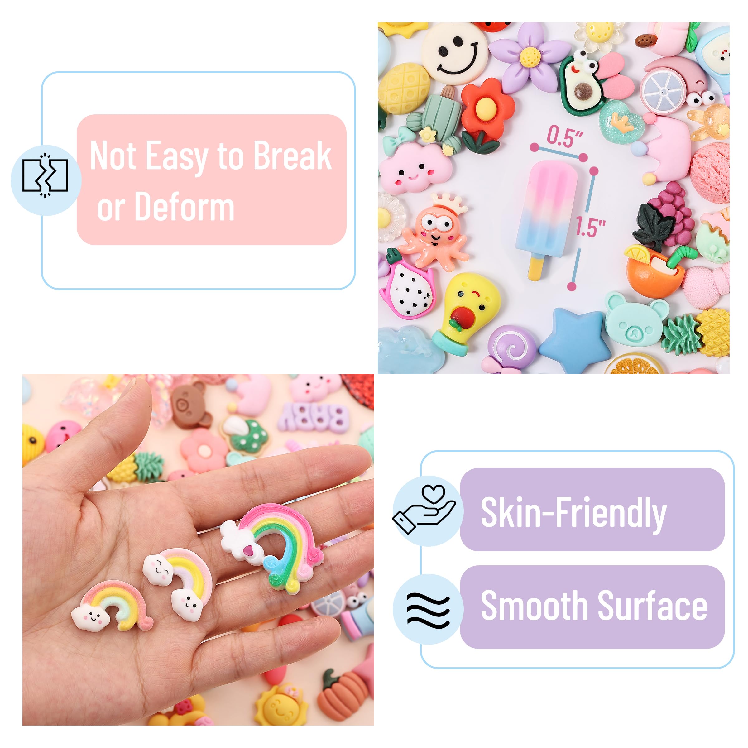 - These slime charms can be used for making DIY works such as hairpins or sewings and for accessories such as phone embellishments! These decorations will add a bit of color and fun to any craft project that you want to work on.