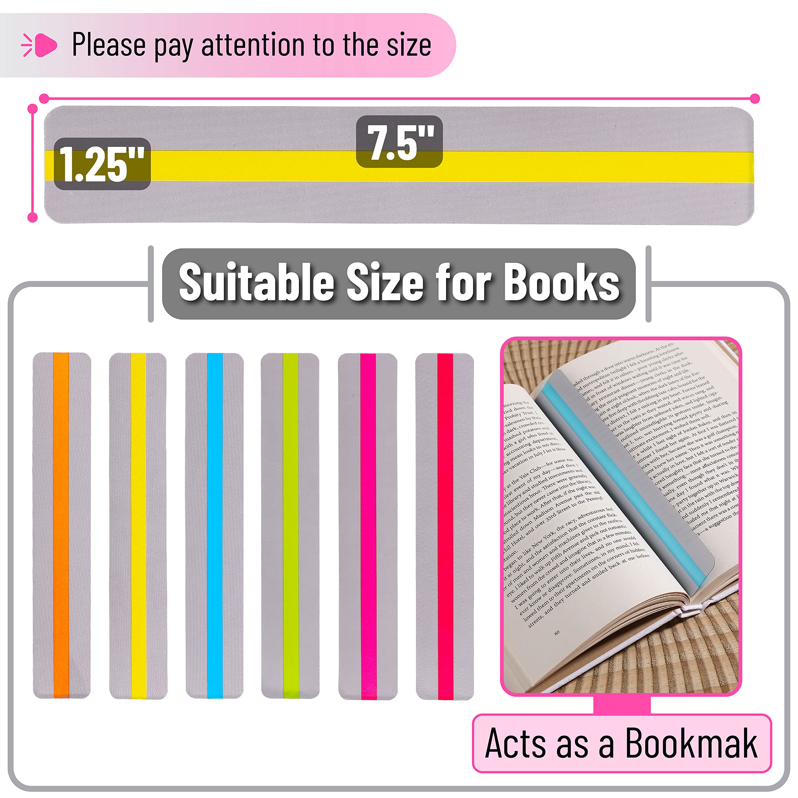 - Crafted from high-quality PVC materials, the size of these reading highlights strips measures 7.5 x 1.3 inches and are durable and water-resistant, making them easy to clean and reuse multiple times.
