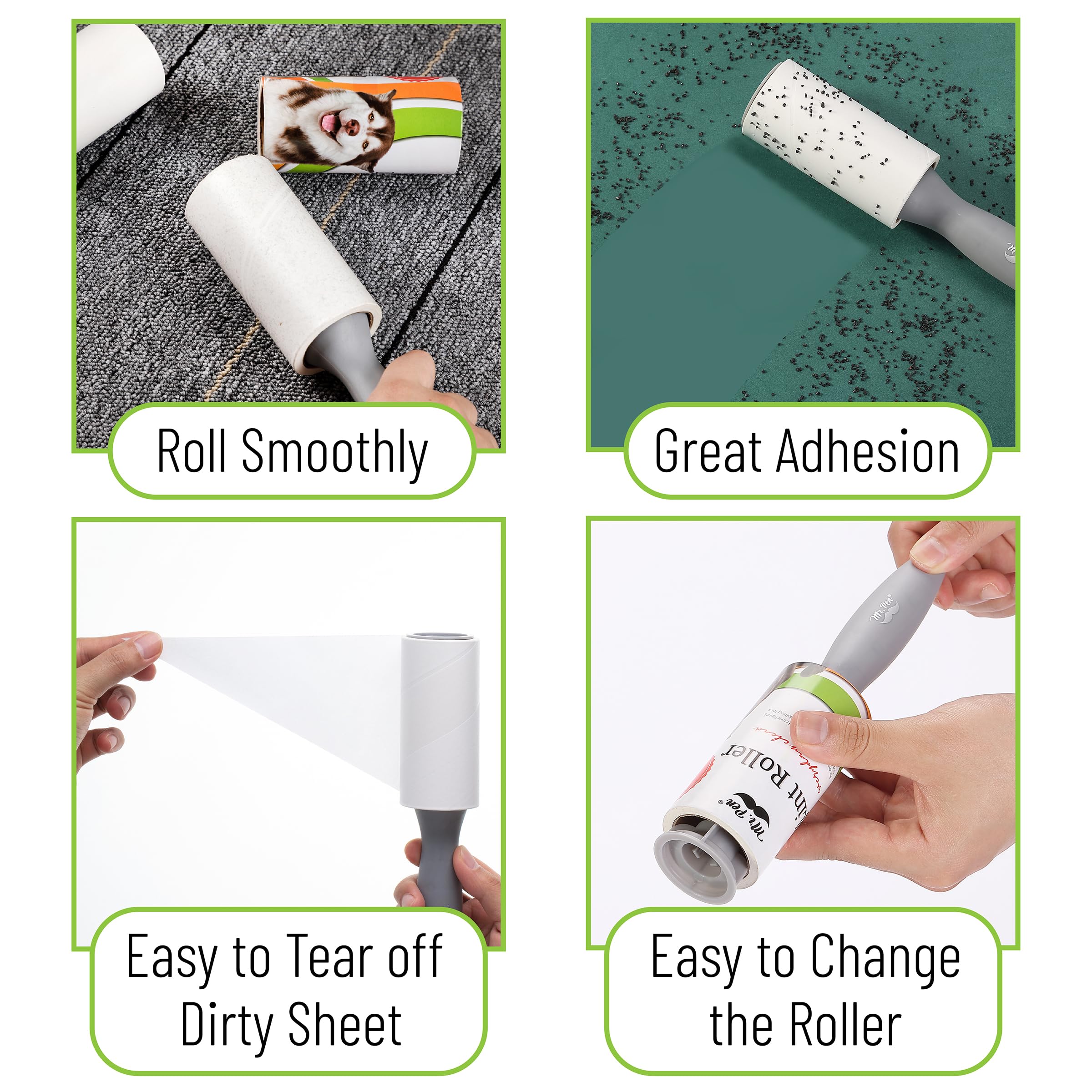 - Mr. Pen lint roller pack comes with 2 ergonomic handles and 6 refill rolls, each with 90 adhesive sheets, for a total of 540 sheets ready to tackle lint, dust, and pet hair.