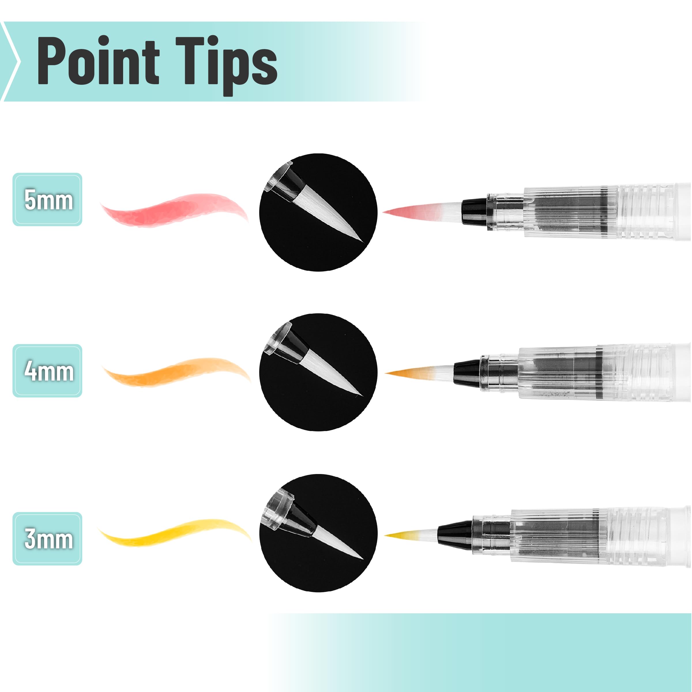 - Each brush pen features a built-in refillable water reservoir, allowing for effortless blending, shading, and controlled water application without the need for separate cups.